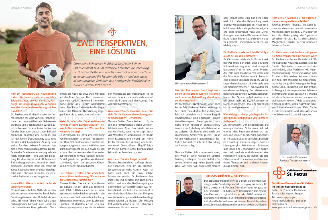 Lesen Sie hier das Interview der ORTHOpress mit Dr. Thorsten Riethmann und dem Ex-Fußballprofi Thomas Bröker